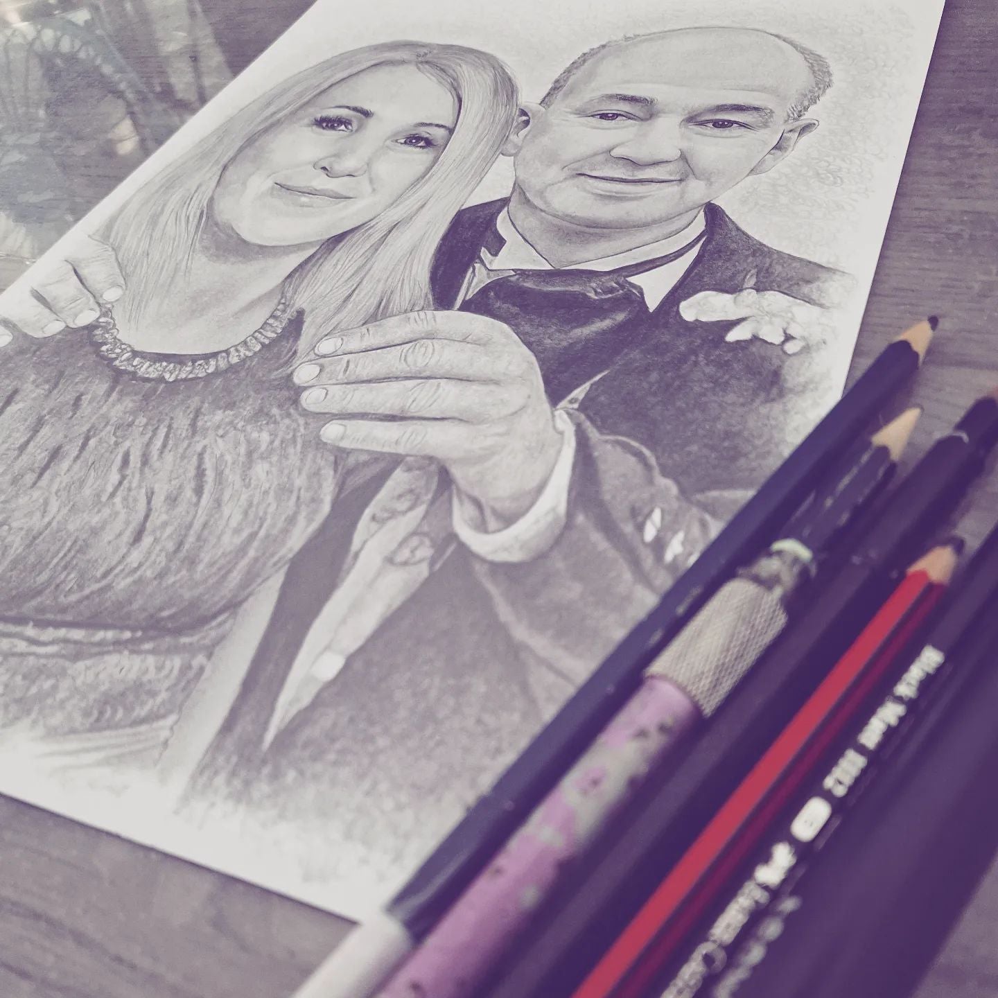 The perfect blend of traditional hand drawing and modern technology. My signature technique is hyper realistic, and incorporates elements of hand drawings to give each portrait a genuine pencil sketch appearance. To ensure that each portrait looks and feels like a genuine pencil sketch, they are printed on high-quality artist sketching paper. Available in both black and white or stunning colour, these portraits are an affordable way to preserve memories and make pencil art accessible to everyone.