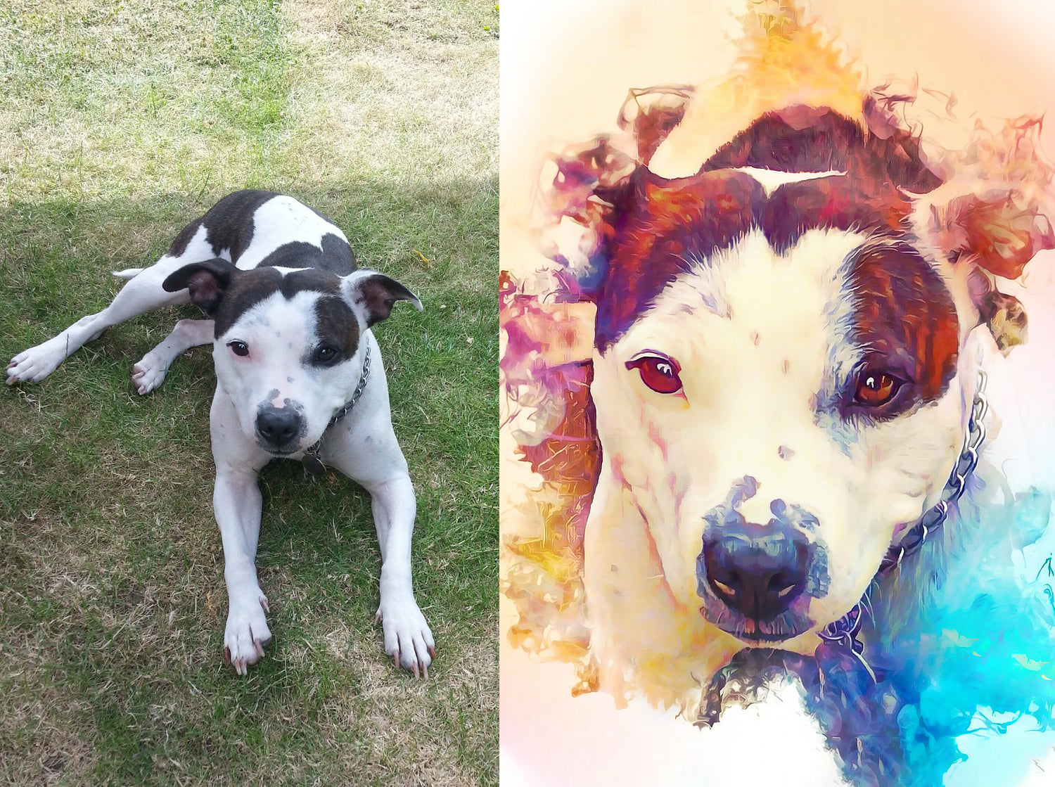 Perfect for pet lovers, my digital pet paintings are a unique way to celebrate your furry friend.With a variety of styles to choose from, including abstract designs, pop out of the frame art and watercolour explosions, there’s something for everyone. Whether you want to add some colour to your home or office, or gift it to a loved one, my pet portraits could well be the ideal solution.