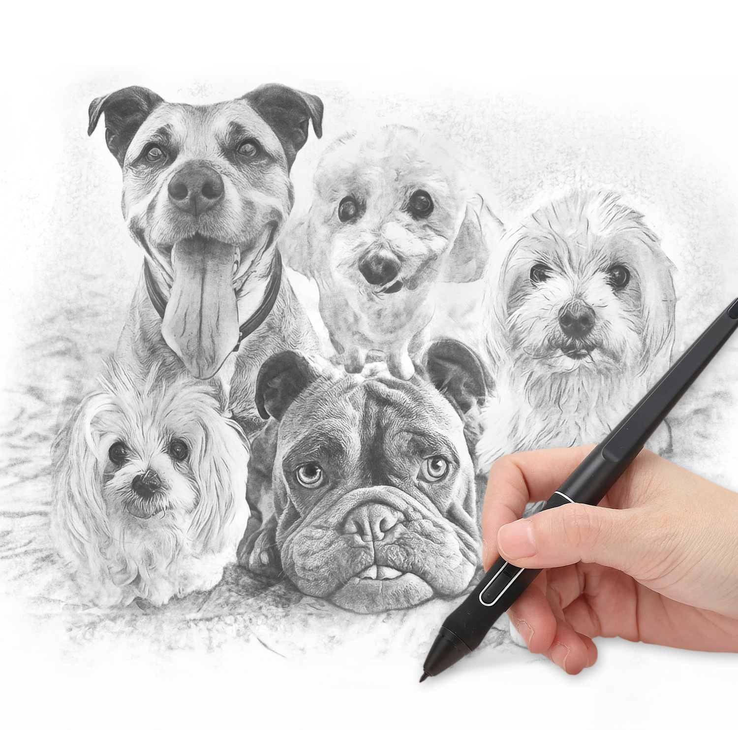 Using a technique that recreates my hand drawing style, my digital pet sketches blend hand-drawn elements with modern technology to produce art that looks and feels like genuine pencil drawings. Printed on high-quality artist sketching paper, my sketches are a beautiful way to preserve the memories of your beloved pets. Commemorate the bond you share with your furry friend and own a piece of custom, hand-drawn inspired pet portraiture today!
